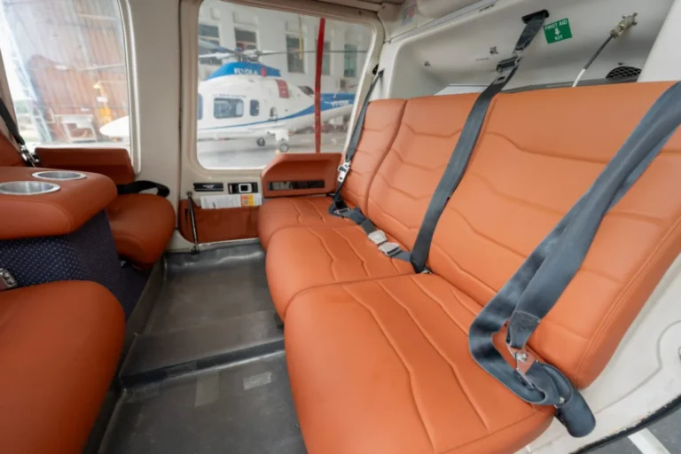 Autotrade Aviation has undertaken a series of interior refurbishment projects on the Bell 407, a platform known for its versatility and utility in both civil and corporate aviation. Our goal has been to elevate the cabin environment while respecting the aircraft’s compact layout and operational practicality. Each project included detailed seat reupholstery using certified aviation-grade materials designed for comfort, durability, and aesthetic appeal. Soft panels were replaced and refinished to bring a cleaner, more contemporary cabin aesthetic, while new flooring materials offered a blend of durability and refined appearance. Our technicians carried out detailed cleaning and interior restoration, ensuring each element—from sidewalls to ceiling panels—met the expectations of premium charter operations. Selective use of embroidery and detailed stitching was incorporated to match operator preferences, maintaining balance and visual harmony within the cabin. Every aspect of the refurbishment adhered strictly to DGCA CAR-145 requirements, ensuring full regulatory compliance. With every Bell 407 project, Autotrade Aviation has reinforced its ability to transform rotorcraft interiors into efficient, stylish, and mission-ready spaces.